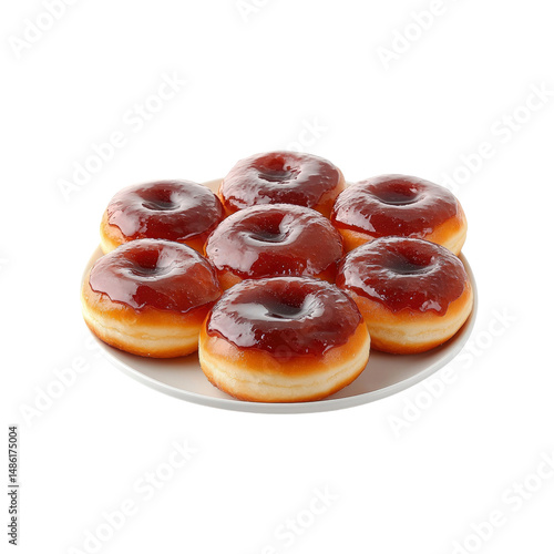 Seven Delicious Glazed Donuts on a White Plate