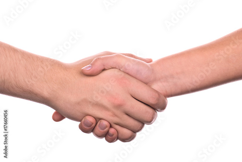 Shaking hands close up shot isolated on white