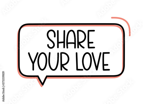 Share your love inscription. Handwritten lettering illustration. Black vector text in speech bubble. Simple outline