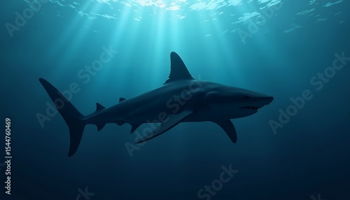 shark, swim, dark, underwater, ocean, deep, sea, light, ray, water, animal, marin, wildlife, creature, fin, tail, oceanic, predator, danger, fish, sunlight, water, nature, environment, background, swimming, habitat, illustration, scene, study, art, biology, awareness