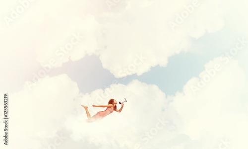 woman, megaphone, advert, freedom, expression, high, sky, announce, female, announcement, brave, break, business, caucasian, shopping, sale, young, concept, contract, courage, escape, flight, fly, fun, funny, girl, hero, heroin, idea, incredible, leadership, manager, scream, speed, strength, success, super, work