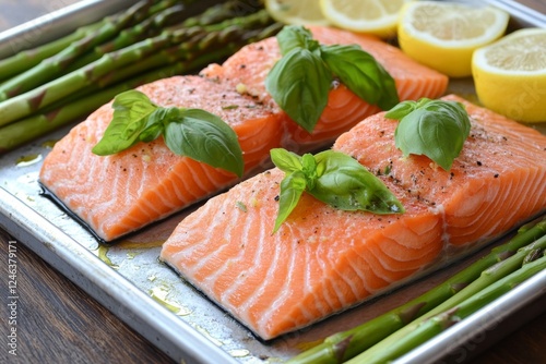 salmon, asparagus, lemon, basil, receipe, food, cooking, dinner, healthy, fish, seafood, meal, prepare, delicious, fresh, baking, tray, kitchen, ingredient, diet, epicure, eatery, organic, nourishment, lifestyle, eat, favor, taste, summer, spring, vitamin, protein, dish, lunch, image, photo, background, epicure