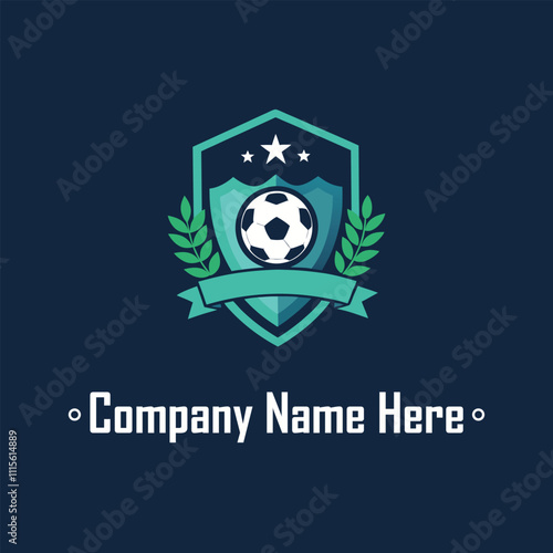 Shield soccer ball laurel stars ribbon dark blueteal minimalist