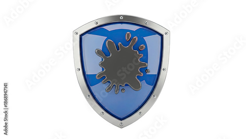 shield, splatter, black, blue, metal, protection, symbol, icon, glossy, liquid, emblem, design, clean, defense, hazard, risk, contamination, security, coating, material, shiny, chrome, steel, badge, abstract, danger, mess, stain, ink, paint, fluid, form, visual, graphic