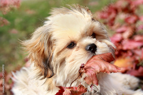 dog, puppy, canino, animal, mammal, domestic, face, leaf, autumn, colours