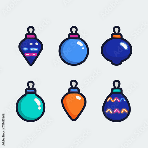 shiny, christmas, bauble, illustration, icon, ornament, holiday, round, colourful, bright, vector, festive, celebration, seasonal, cartoon, cute, design, new year, decorative, sparkle