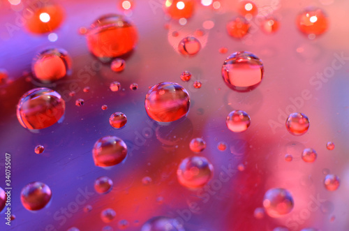 shiny clear water point attached to a glass reflects the same color as the color on the glass into a beautiful background as decoration