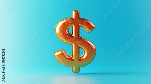 Shiny Gold Dollar Sign on Vibrant Blue Background for Financial and Business Themes
