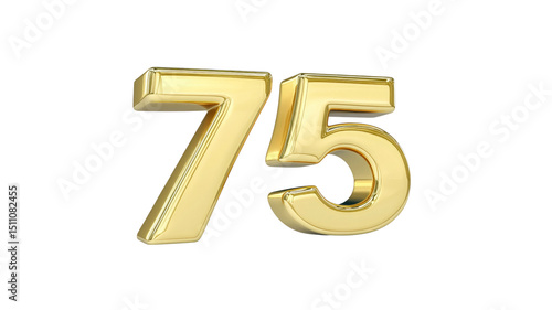 Shiny Golden Number 75 3D Render of Seventy-Five for Anniversary, Celebration, or Sale