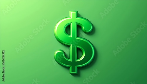 Shiny green dollar sign on green background, symbolizing wealth and prosperity. The dollar sign appears to be 3D, suggesting value and richness.
