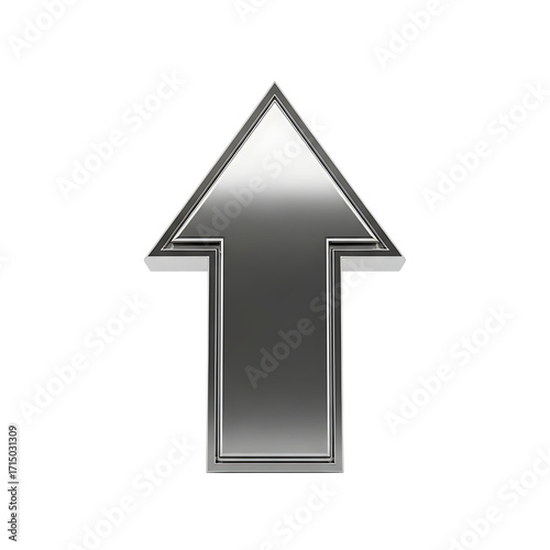 Shiny metallic arrow pointing upwards isolated on transparent background