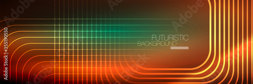 Shiny neon lines, stripes and waves, technology abstract background. Trendy abstract layout template for business or technology presentation, internet poster or web brochure cover, wallpaper