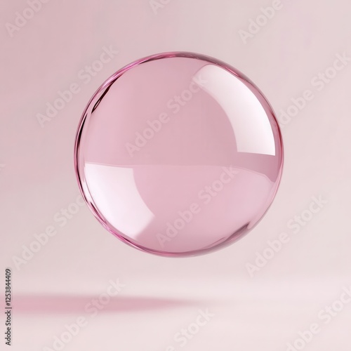 Shiny Pink Bubble Floating in Midair with Reflective Surface and Soft Lighting