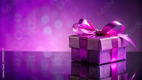 gift, box, purple, shiny, ribbon, bow, background, light, present, surprise, celebration, birthday, special occasion, anniversary, holiday, festive, elegance, luxury, beautiful, pretty, decoration