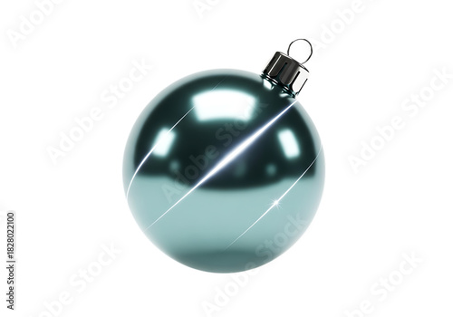 Shiny teal christmas ornament isolated on transparent background for holiday decor