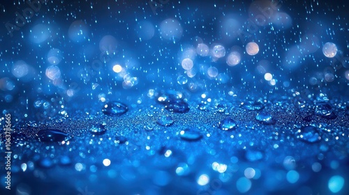 shiny water droplets glistening on a blue background with a soft blur effect enhancing the freshness and vitality creating an aesthetic representation of natures beauty