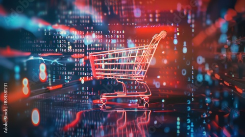 shopping, cart, digital, commerce, technology, online, binary, code, red, blue, background, abstract, futuristic, e-business, retail, sale, datum, network, cyberspace, virtual, cyber, graphic, design, illustration, modern, concept, future, innovation, progress, icon, symbol, web, business, market, consumer, global