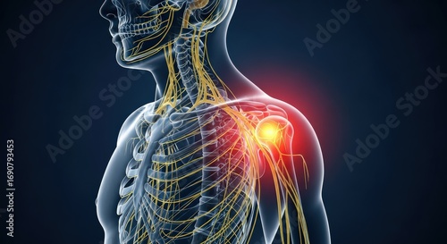 Shoulder Joint Pain and Nerve Structure Medical Illustration