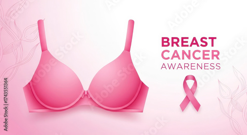 Show your support with this breast cancer awareness ribbon and pink bra illustration