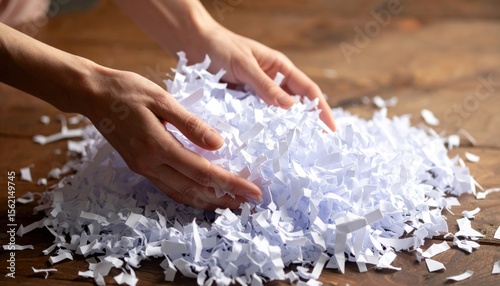 shredded, paper, shredding, document, hand, white, wooden, table, recycling, disposal, waste, office, business, destruction, privacy, confidential, security, file, garbage, cleaning, clearing, process, document, environmental