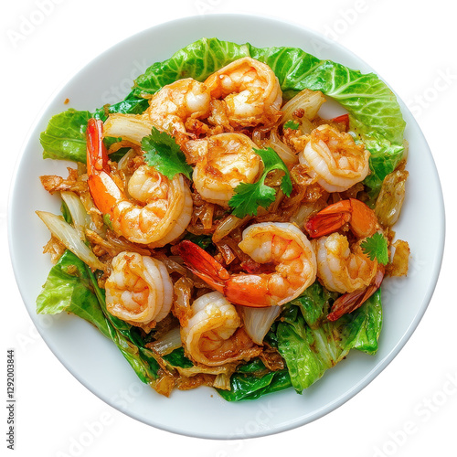 Shrimp fried cabbage dish featuring fresh shrimp and vibrant vegetables on a Transparent background, Shrimp Fried Cabbage thai food isolated on PNG background