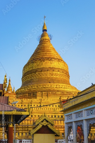 Shwezigon Pagoda, golden stupa, Nyaung U, Mandalay Region, Bagan, Myanmar, Asia