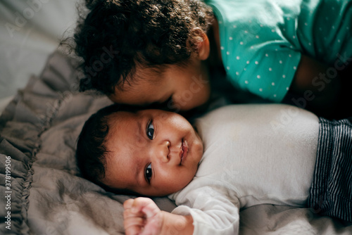 togetherness, smile, newborn, love, indoor, happy, furniture, family, face, cute, cushion, blanket, bedchamber, affection, mixed race, multiracial, boy, male, person, people, newborn, baby, baby, infant, infant, children, children, girl, female, offspring, tyke, tot, children, toddler, toddler