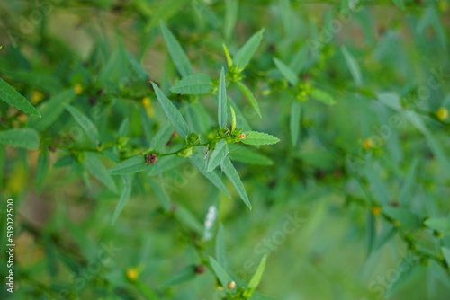 Sida acuta (aslo called common wireweed, sidaguri,sidogori) with natural background. This plant species of flowering plant in the mallow family, Malvaceae. Sida acuta is considered an invasive species