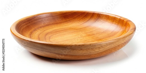 Side View of a Single Empty Wooden Dish Isolated on White Background for Culinary Use, Kitchen Decor, and Table Settings - Perfect for Stock Photography and Design Projects