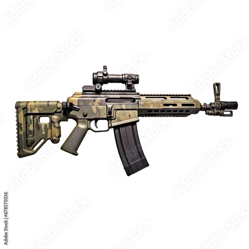 Side view of assault rifle isolated on a white transparent background