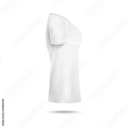 Side view of woman T-shirt realistic template, vector illustration isolated.