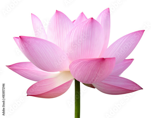 Side-View Pink Lotus Blossom with Curved Stem, Elegant Floral Silhouette