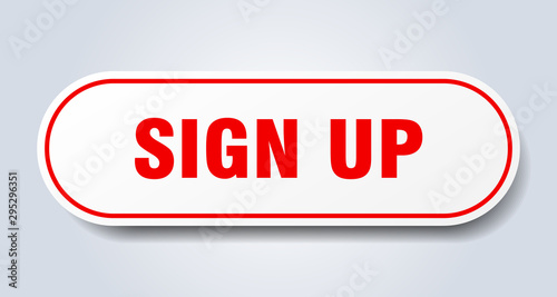sign up, up, three-dimensional, badge, banner, buttons, flat, isolated, label, paper, peeler, price tag, red, rounded, seal, signs, square, stamp, sticker, tags, template, vector, web, website, white, white background
