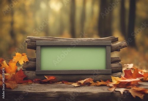 signboard wood leaf announcement leaves green antique fall rustic blank border signs log