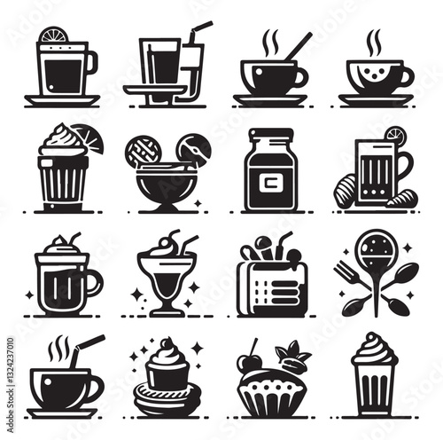 Silhouette icon set of cafe icons, restaurant icon, food and drink icon vector style on white background.