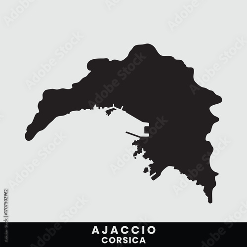 ajaccio, corsica, france, map, silhouette, outline, geography, island, mediterranean, coast, coastline, harbor, port, bay, city, urban, landscape, travel, tour tourism, destination, location, region, territory, administrative, capital, european, french, graphic, design, illustration, vector, black-and-white, simple, minimalist, iconic, landmark, aerial view, cartography, navigation, maritime, nautical, waterfront, infrastructure, development, settlement