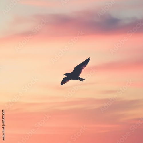 Silhouette of a Bird Soaring in a Pastel Sunset Sky