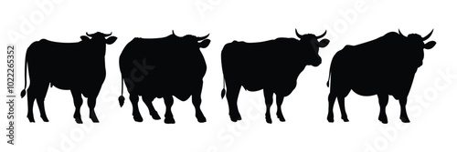 cow, animal, silhouette, farm, vector, illustration, pig, bull, white, black, milk, mammal, meat, cattle, isolated, beef, icon, pork meat, goat, sheep, nature, cartoon, outline, wild, agriculture, art, picture, design, drawing, vignetting, farming, graphic, domestic, buffalo, head