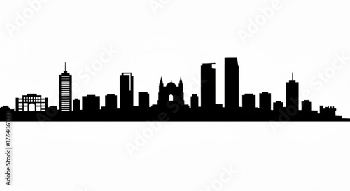 silhouette, city, skyline, building, structure, architecture, urban, landscape, black, white, minimalist, modern, design, illustration, graphic, template, background, landmark, tower, skyscraper, dome, church steeple, roof, facades, metropolis, city landscape, downtown, horizon, art, symbol, icon, simple, style, abstract, shape, element, vector, drawing, clip art, image, view, scene, panorama, outline, form, pattern, monochrome, highrise