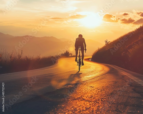 Silhouette of a cyclist on a road, sunrise, Human Silhouette, Journey and determination