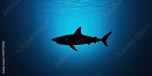 Silhouette of a Great White Shark Swimming in the Ocean Depths