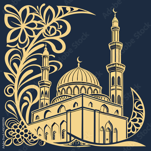 Silhouette of a mosque with minarets and a dome in Istanbul, showcasing architectural beauty and religious significance