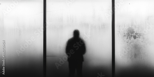 silhouette, person, behind, frosted, glasses, creating, sense, isolation, distance