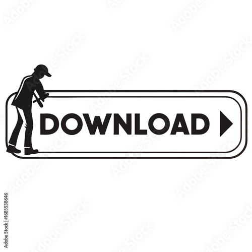 Silhouette of a person wearing a cap pressing a download button with a play arrow icon