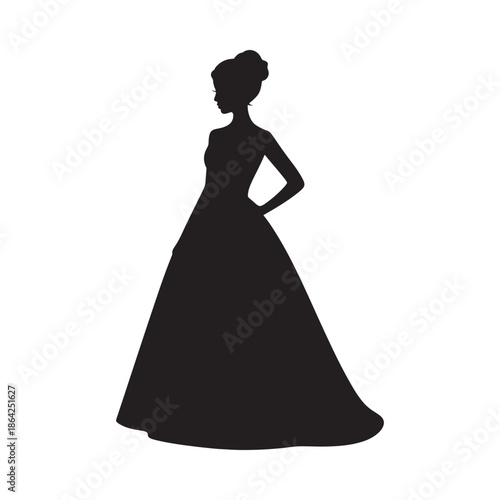 silhouette, woman, formal, ball, gown, dress, evening, wear, fashion, style, elegance, elegant, confident, standing, profile, side, view, black, white, background, isolated, illustration, vector, graphic, art, design, element, icon, clip, artwork, simple, minimal, classic, romantic, beautiful, luxury, glamour, glamourous, sophisticated, chic, confidently