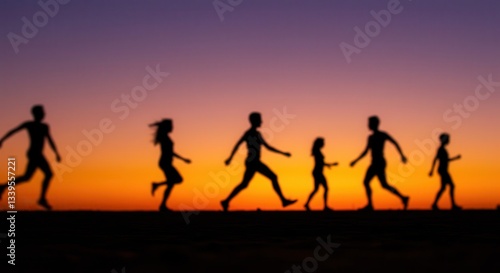 children, running, silhouette, sunset, horizon, children, motion, colourful, sky, orange, purple, ground, stride, together, youth, activity, backlit, childhood, landscape, family, lifestyle, fun, vacation, recreation, journey, travel, exploration, freedom, warm, evening, scenic, active, blur, horizontal, leisure, daytime, joy, escape, play