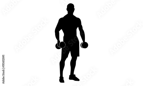 silhouette of male bodybuilding with barbell.