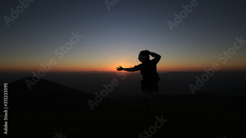 sunset, silhouette, sky, sun, sunrise, woman, freedom, people, nature, mountain, person, landscape, sport, success, shadow, joy, travel, running, arm, happy, outdoors, happiness, leisure, young, boy
