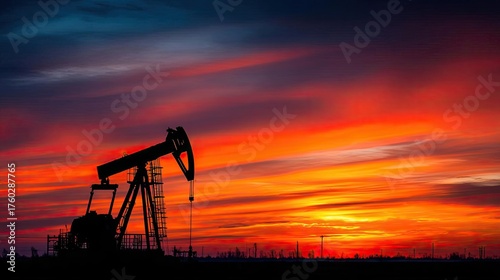 oil, pump, field, sunset, financial, jack, silhouette, fossil, resource, refinery, glow, technique, gas, fuel, gloaming, stunning, power, supply, oilfield, energy, production, vibrant, industry, abstract, machine, sky, metal, station, evening, nature, landscape