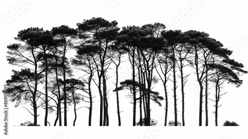 silhouette, pine, tree, clear, sky, nature, forest, outline, black, white, contrast, high, canopy, tree branch, scenic, calmness, peaceful, skyline, environment, timberland, natural, background, coniferous, tall, simple, minimal, monochrome, vegetation, flora, serene, wilderness, stark, dramatic, ecological, graphic, design, clean, template, botanical, beauty, landscape